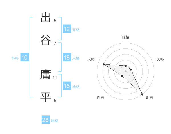 出谷 庸平さんを姓名の画数から五運を鑑定