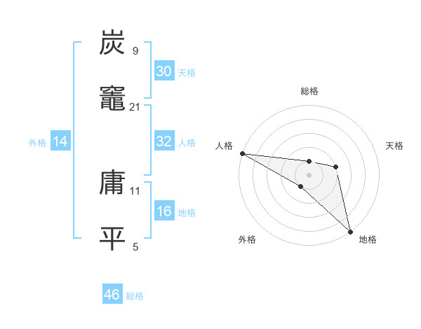 炭竈 庸平さんの総格は46画の1点!
