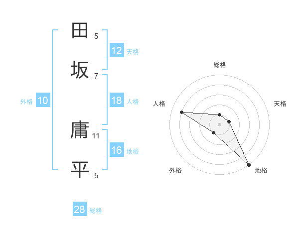 田坂 庸平さんの総格は28画の1点!