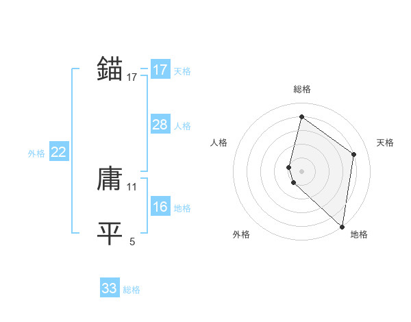 錨 庸平さんの天格は17画の4点!
