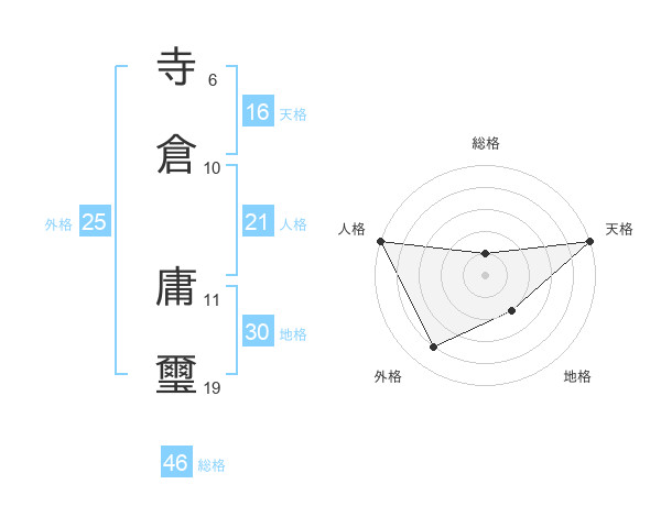 寺倉 庸璽さんを姓名の画数から五運を鑑定