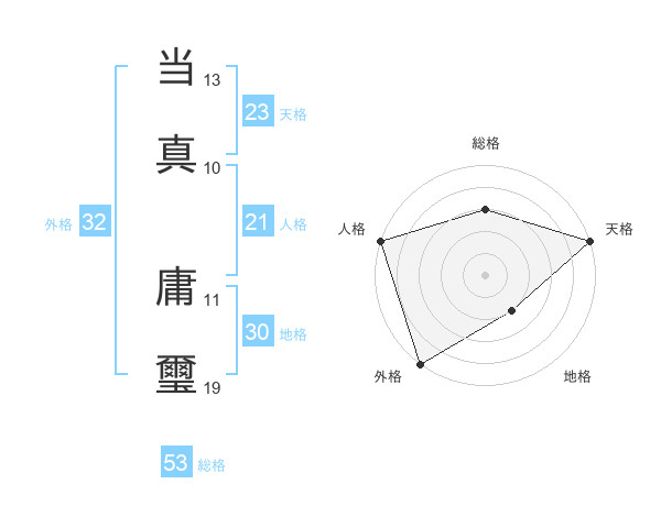 当真 庸璽さんを姓名の画数から五運を鑑定
