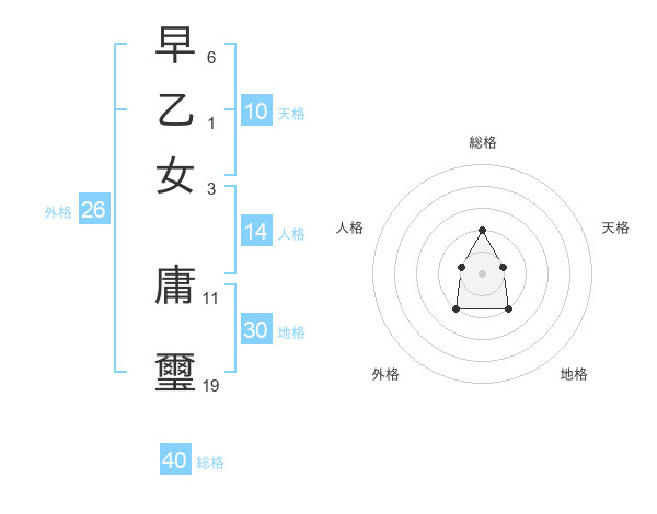 早乙女 庸璽さんを姓名の画数から五運を鑑定