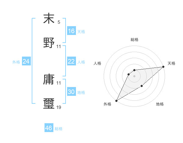 末野 庸璽さんを姓名の画数から五運を鑑定