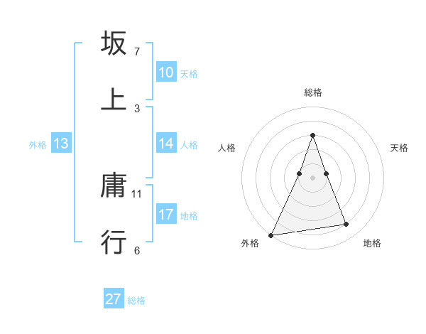 坂上 庸行さんを姓名の画数から五運を鑑定