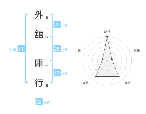 外舘 庸行さんの総格は39画の5点!
