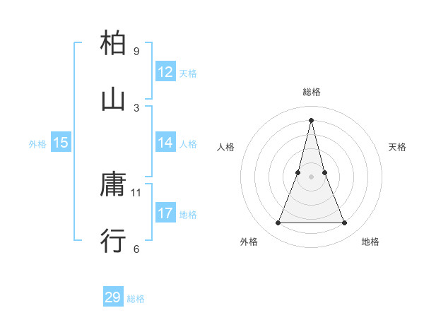 柏山 庸行さんの総格は29画の4点!