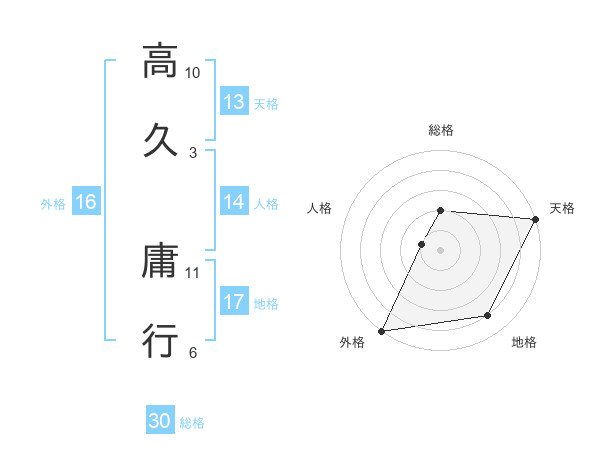 高久 庸行さんの総格は30画の2点!