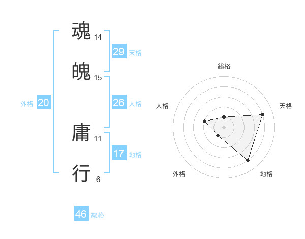 魂魄 庸行さんを姓名の画数から五運を鑑定