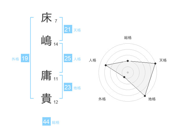 床嶋 庸貴さんを姓名の画数から五運を鑑定