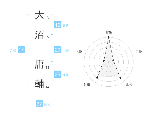 大沼 庸輔さんを姓名の画数から五運を鑑定