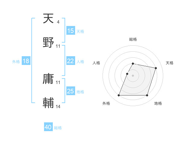 天野 庸輔さんを姓名の画数から五運を鑑定
