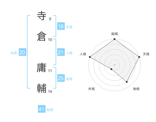 寺倉 庸輔さんを姓名の画数から五運を鑑定