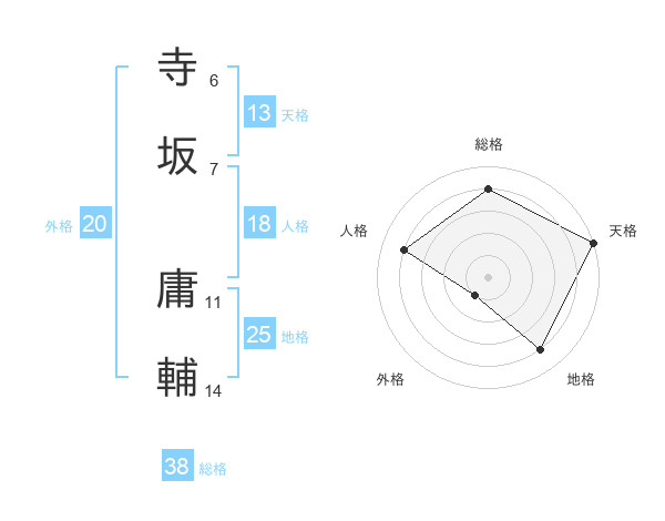 寺坂 庸輔さんの総格は38画の4点!