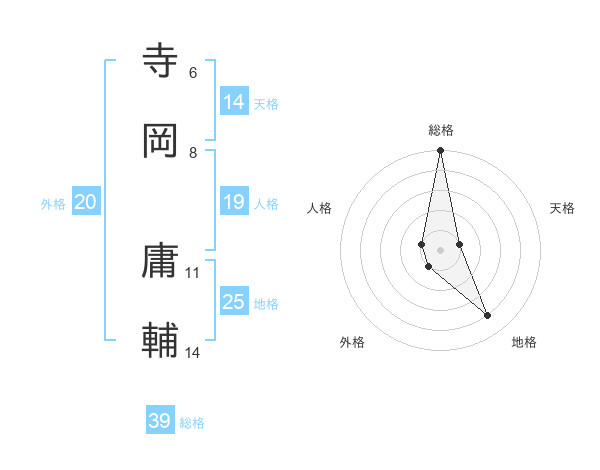 寺岡 庸輔さんの総格は39画の5点!