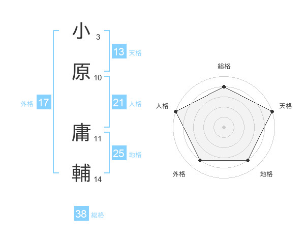 小原 庸輔さんを姓名の画数から五運を鑑定