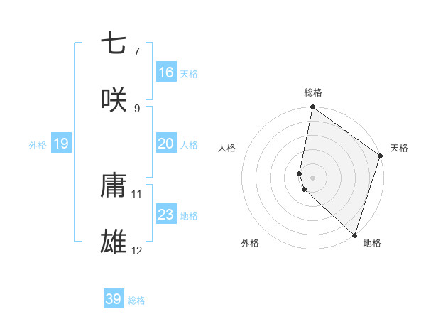 七咲 庸雄さんの外格は19画の1点!
