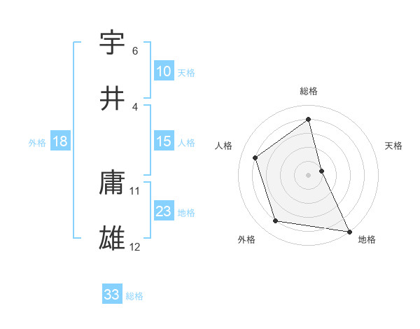宇井 庸雄さんの総格は33画の4点!