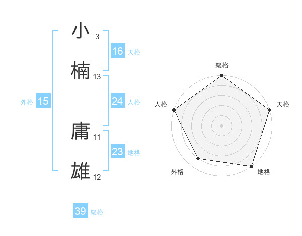 小楠 庸雄さんの総格は39画の5点!