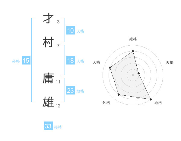 才村 庸雄さんの総格は33画の4点!