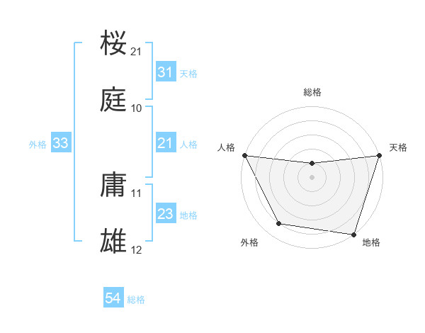 桜庭 庸雄さんを姓名の画数から五運を鑑定