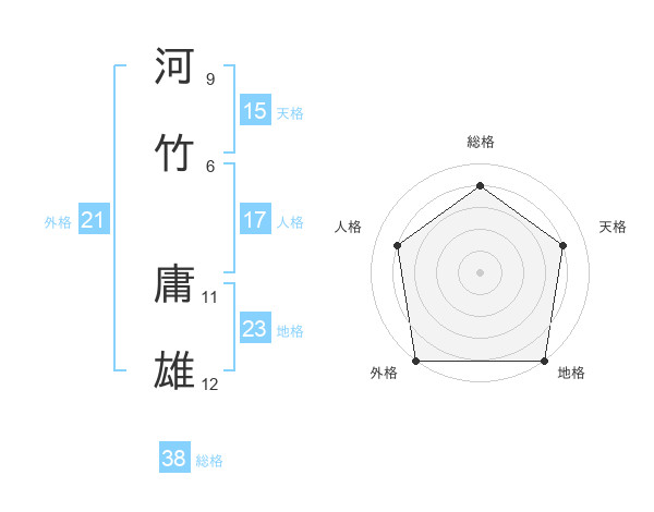 河竹 庸雄さんの総格は38画の4点!
