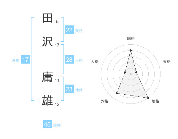 田沢 庸雄さんを姓名の画数から五運を鑑定