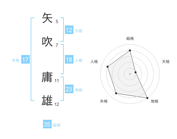 矢吹 庸雄さんの天格は12画の1点!