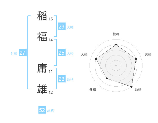 稲福 庸雄さんを姓名の画数から五運を鑑定