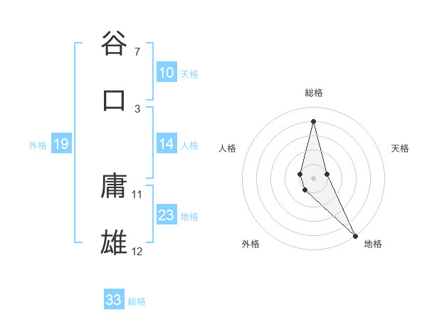 谷口 庸雄さんを姓名の画数から五運を鑑定