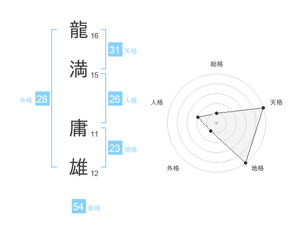 龍満 庸雄さんの天格は31画の5点!