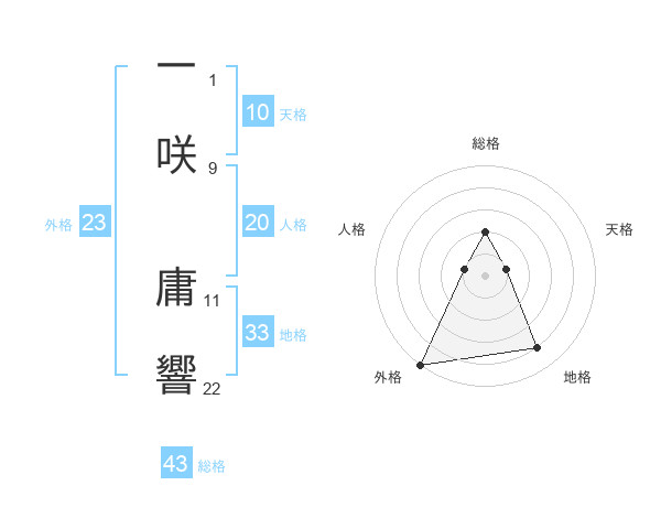 一咲 庸響さんを姓名の画数から五運を鑑定