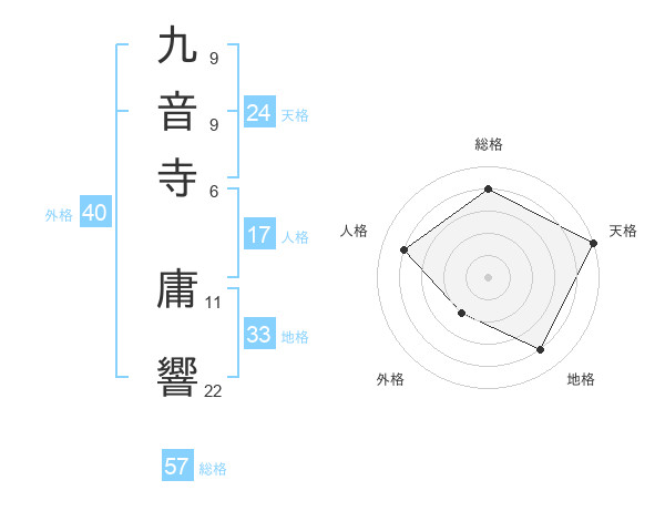 九音寺 庸響さんの総格は57画の4点!