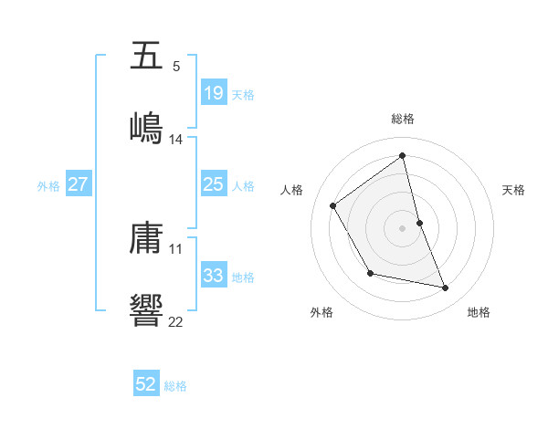 五嶋 庸響さんの総格は52画の4点!