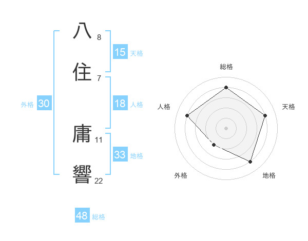 八住 庸響さんの総格は48画の4点!