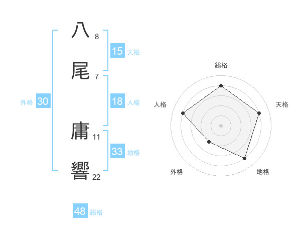 八尾 庸響さんの総格は48画の4点!