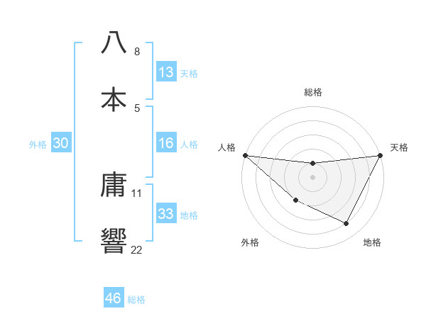 八本 庸響さんの天格は13画の5点!