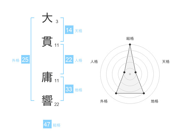 大貫 庸響さんの総格は47画の5点!