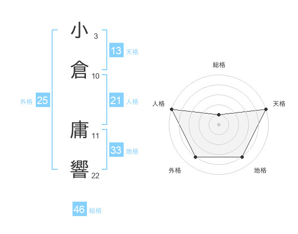 小倉 庸響さんの天格は13画の5点!