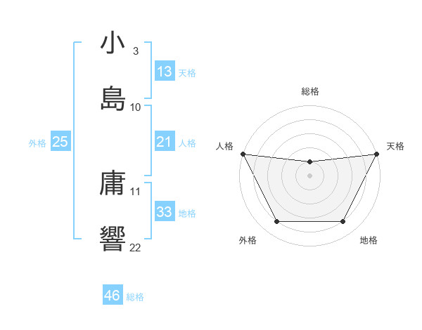 小島 庸響さんの総格は46画の1点!