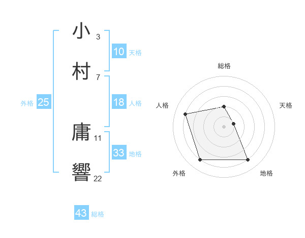 小村 庸響さんの総格は43画の2点!