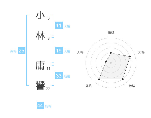 小林 庸響さんの総格は44画の2点!