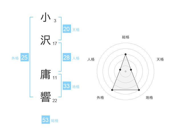 小沢 庸響さんの総格は53画の3点!