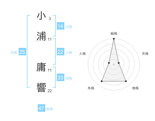 小浦 庸響さんの総格は47画の5点!