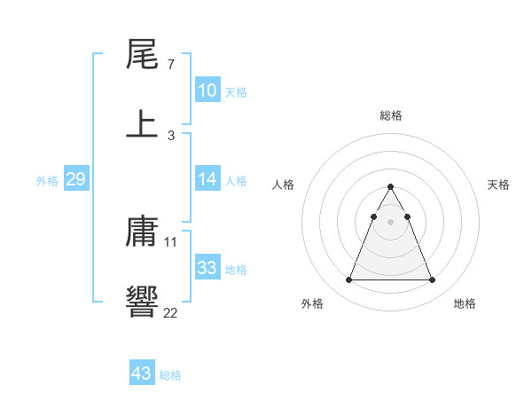 尾上 庸響さんを姓名の画数から五運を鑑定