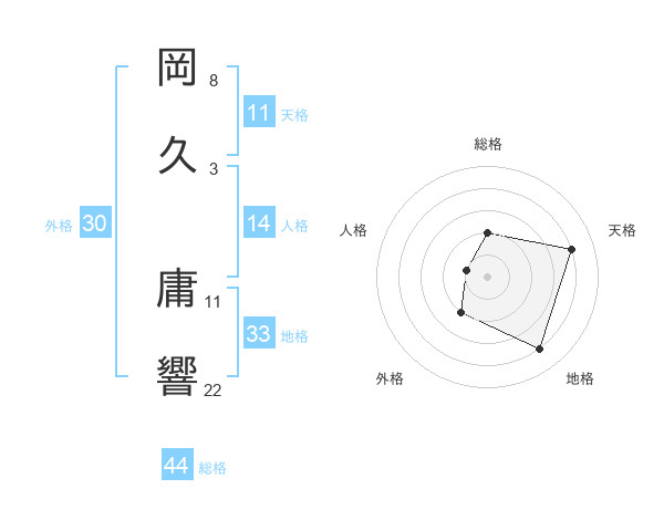 岡久 庸響さんを姓名の画数から五運を鑑定