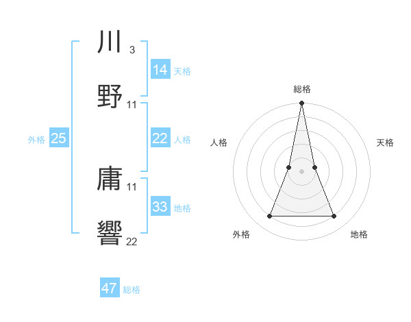 川野 庸響さんの総格は47画の5点!