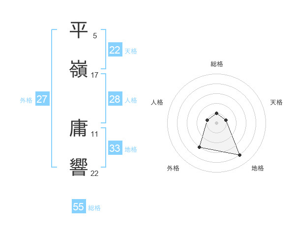 平嶺 庸響さんを姓名の画数から五運を鑑定