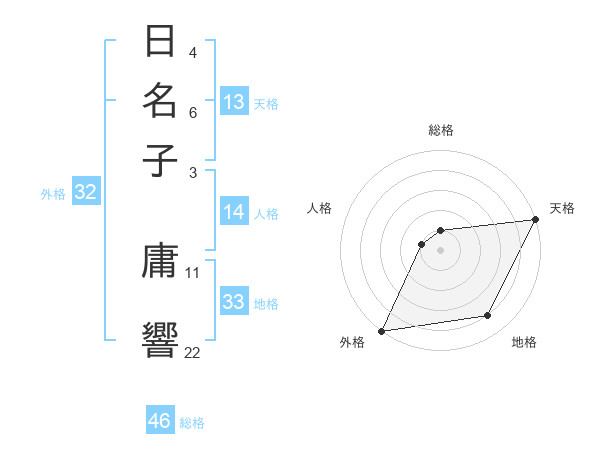 日名子 庸響さんの総格は46画の1点!