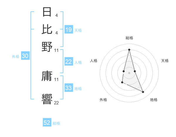日比野 庸響さんを姓名の画数から五運を鑑定
